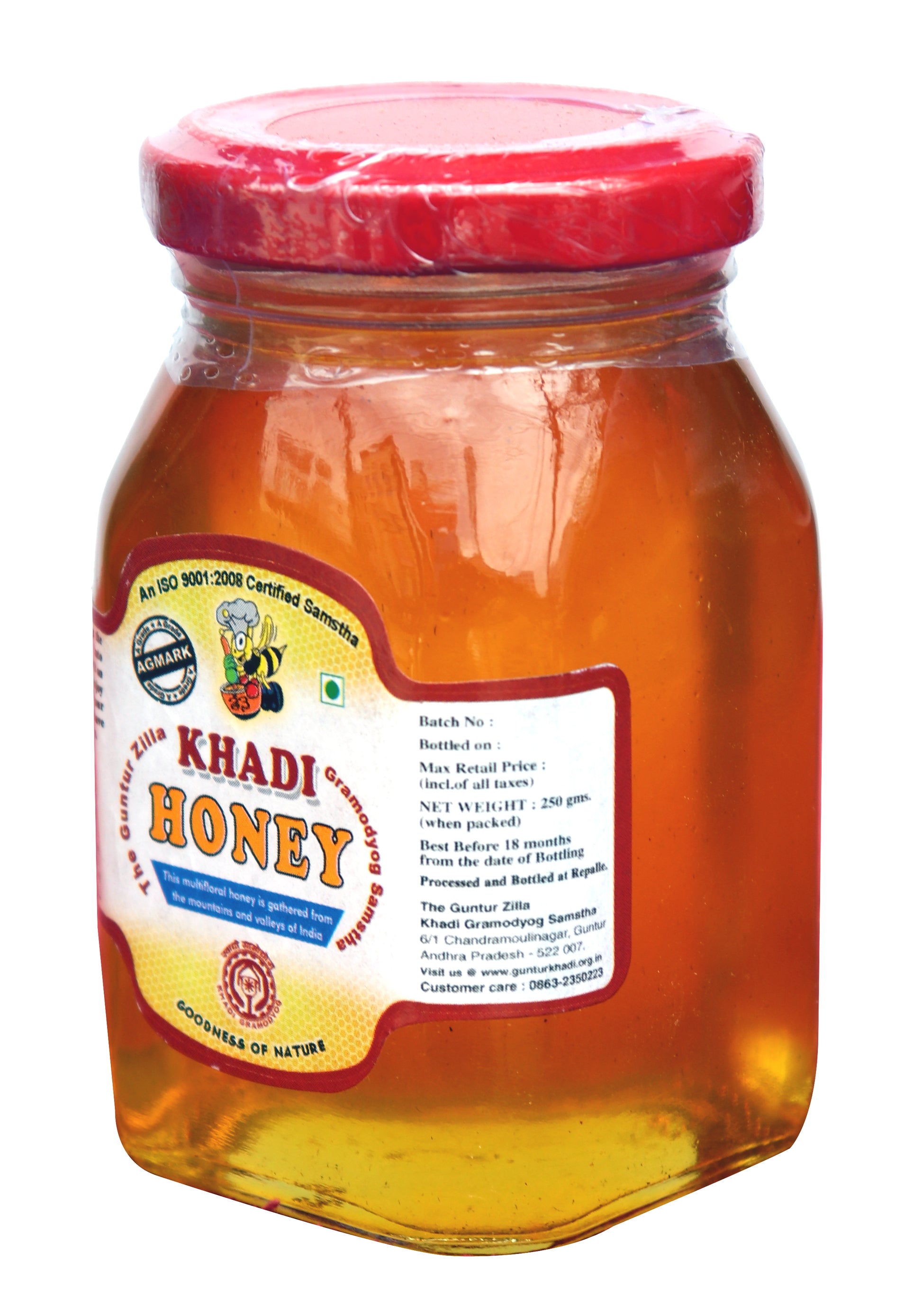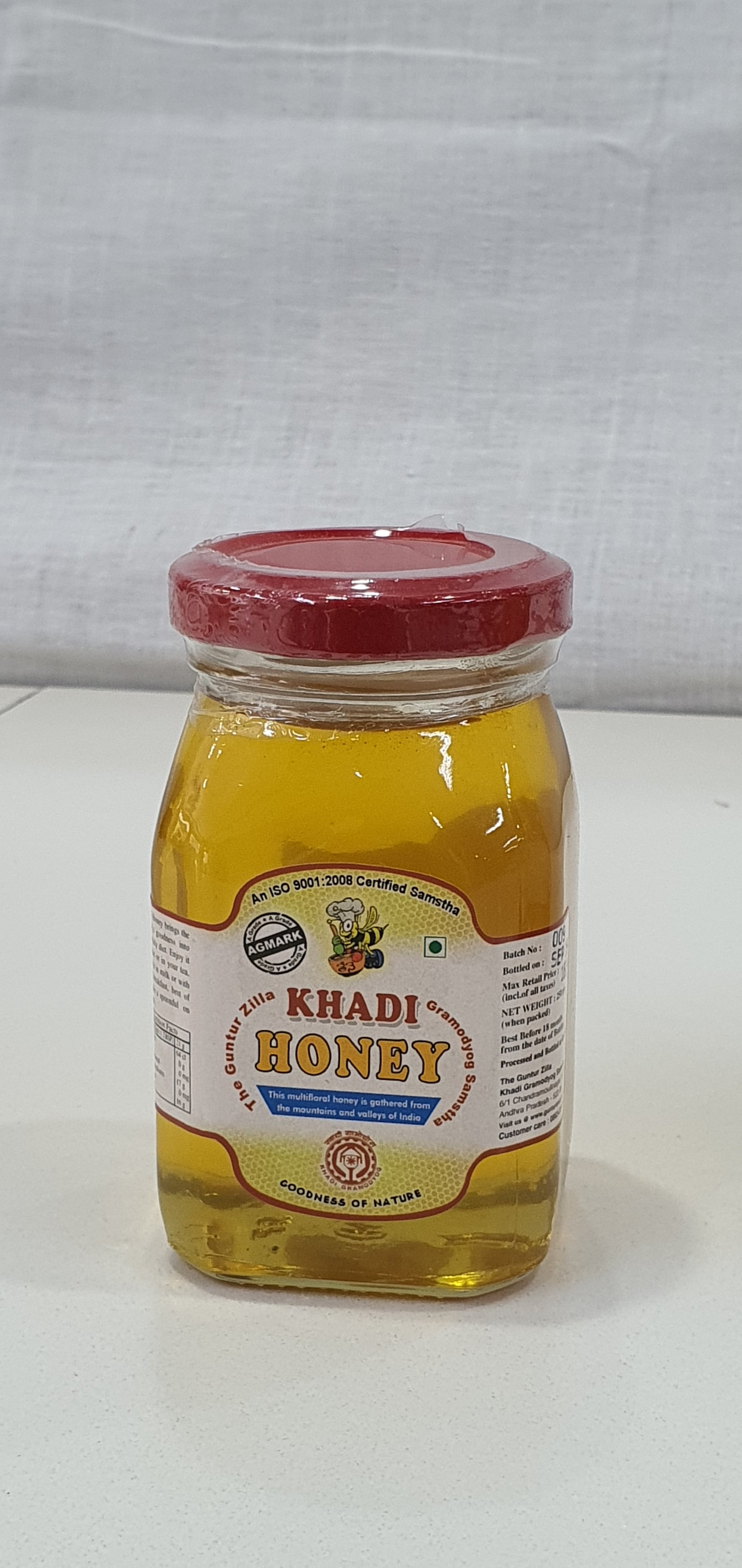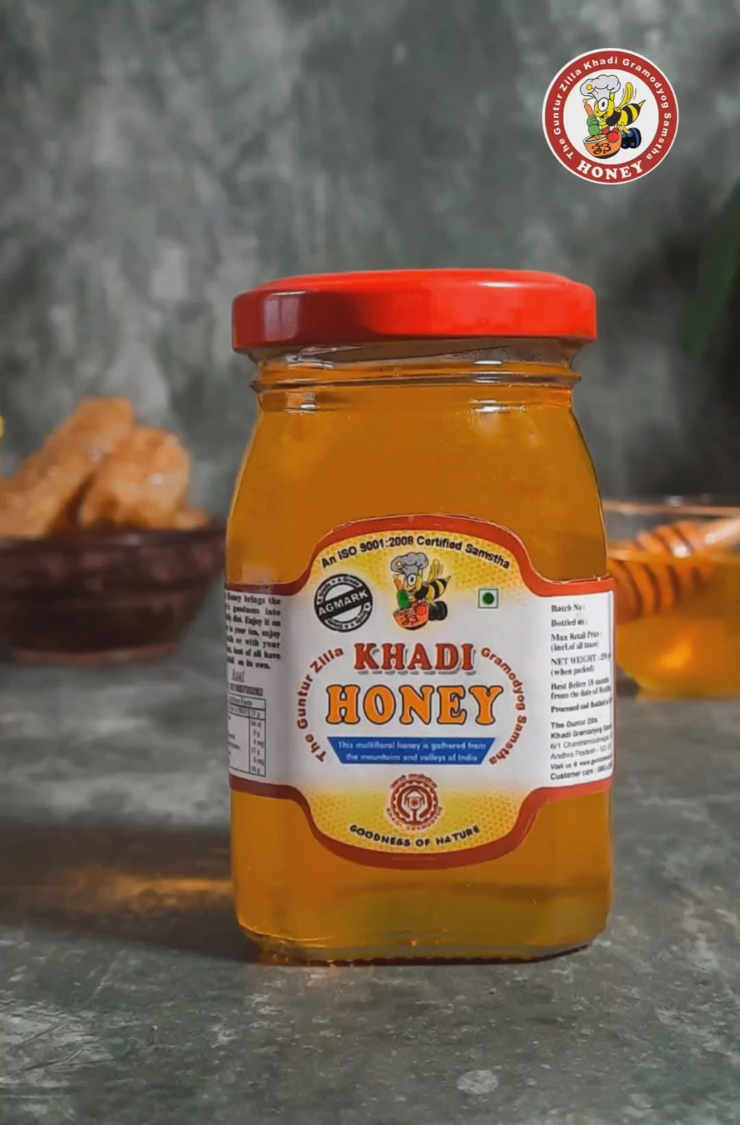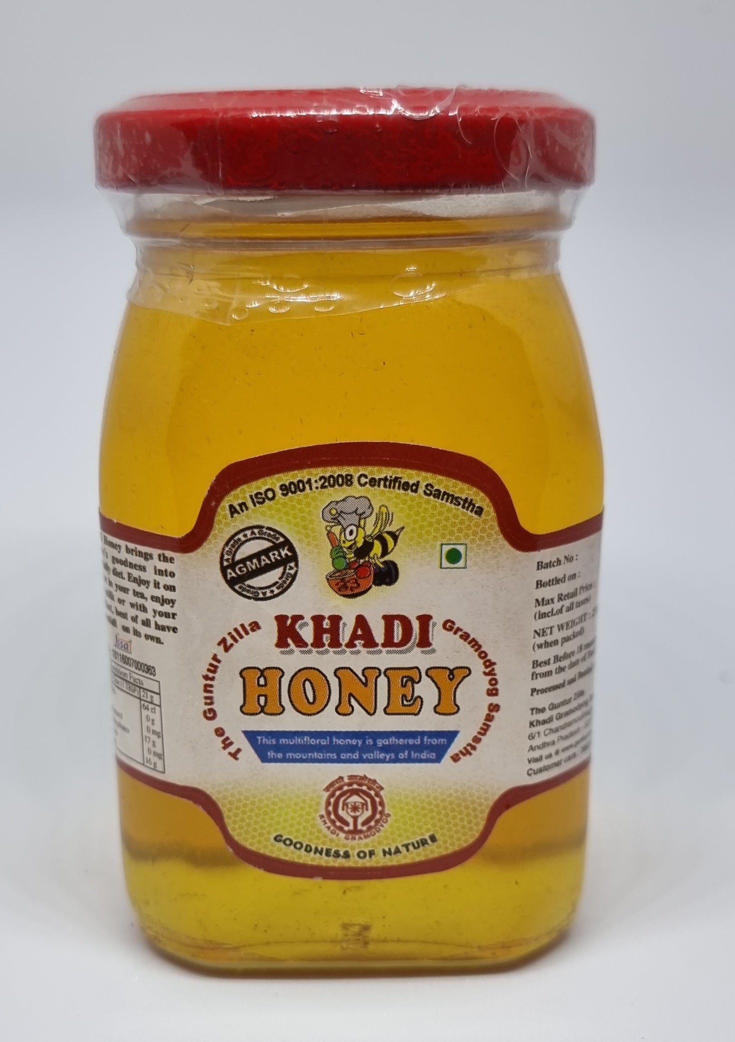 Khadi Honey is gathered from the mountains and valleys of India. Honey is used as an anti-inflammatory, antioxidant and antibacterial agent. People commonly use honey orally to treat coughs and topically to treat burns and promote wound healing.